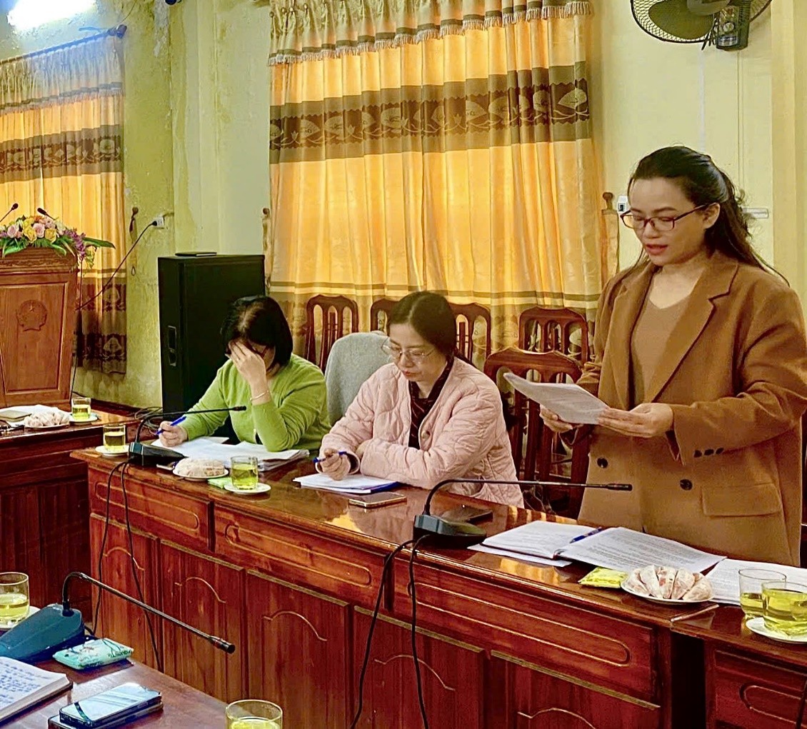 Ảnh: Đ/c Nguyễn Thị Hòa, Phó Trưởng Phòng Bổ trợ và hành chính Tư pháp báo cáo kết quả thực hiện