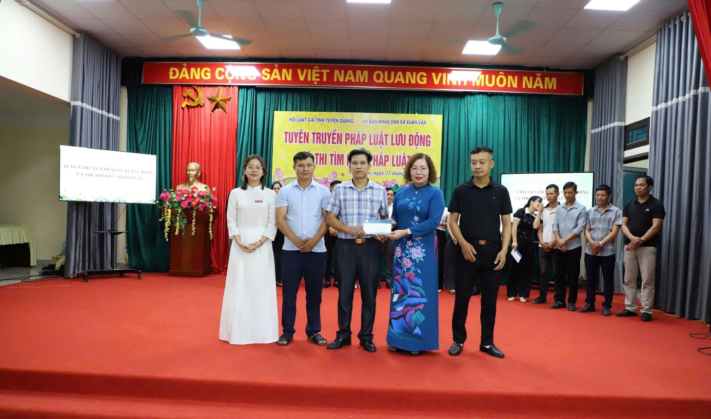 Thực hiện Kế hoạch số 27/KH-UBND ngày 08/8/2025 của Uỷ ban nhân dân tỉnh Phát động phong trào thi đua yêu nước lập thành tích xuất sắc chào mừng Đại hội đại biểu Đảng bộ tỉnh Tuyên Quang, nhiệm kỳ 2025-2030 và Đại hội đại biểu lần thứ XIV của Đảng, ngày 21/9/2025, Hội Luật gia tỉnh Tuyên Quang đã phối hợp với Uỷ ban nhân dân xã Xuân Vân tổ chức Tuyên truyền pháp luật lưu động và Hội thi tìm hiểu pháp luật. Luật gia Nguyễn Thị Thược, Chủ tịch Hội Luật gia tỉnh cùng Phó Bí thư Thường trực Đảng uỷ xã Triệu Anh Dũng và Phó Bí thư Đảng uỷ, Chủ tịch Uỷ ban nhân dân xã Xuân Vân Hà Mạnh Linh dự và chỉ đạo. Tham dự, cổ vũ Hội thi có trên 100 đại biểu là cán bộ, công chức xã và người dân xã Xuân Vân.