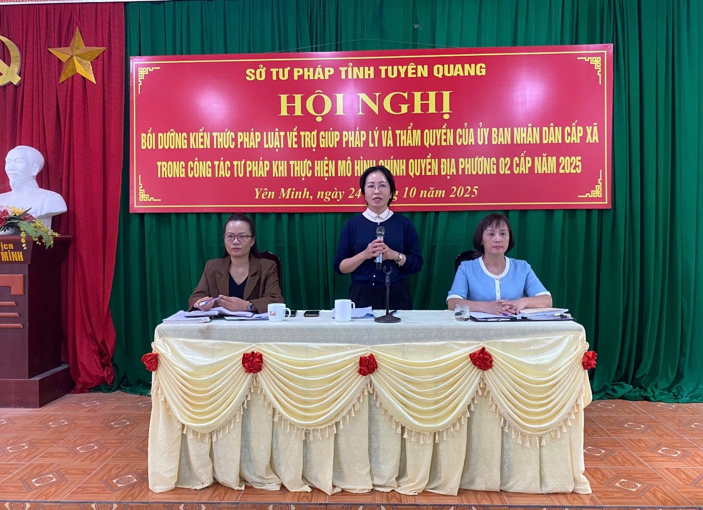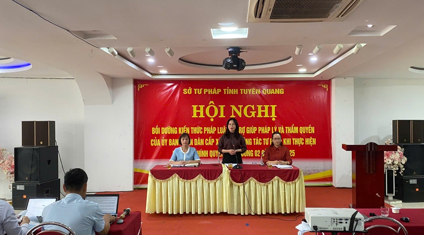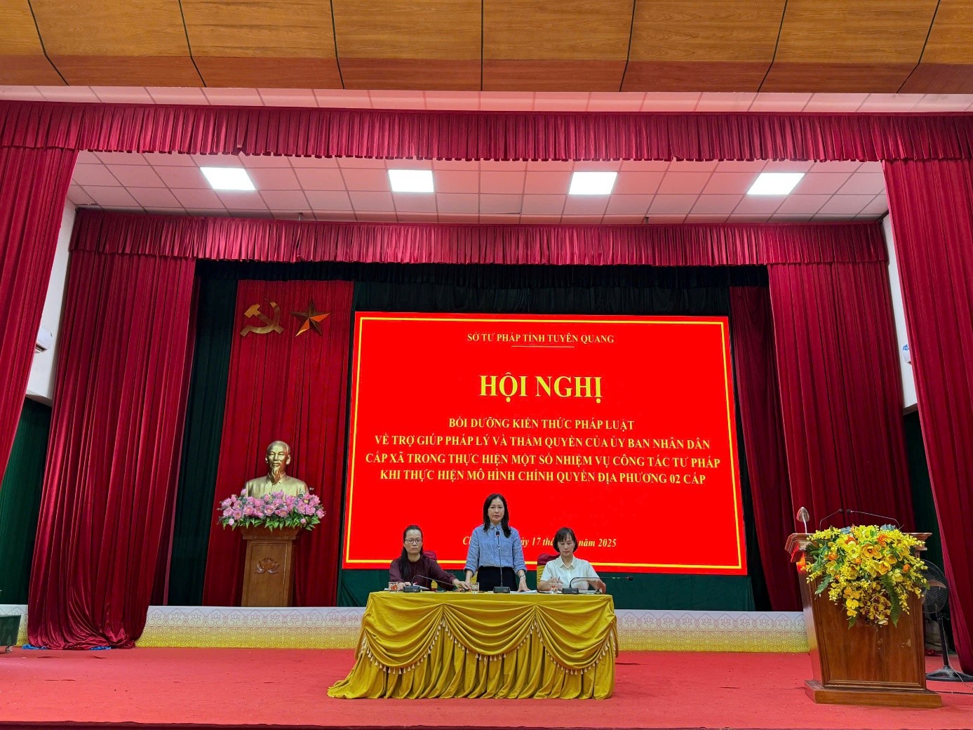 Nhằm vận hành hiệu quả mô hình chính quyền địa phương hai cấp, bồi dưỡng kiến thức pháp luật chuyên sâu về trợ giúp pháp lý cho cán bộ cơ sở, nâng cao hiệu quả công tác phối hợp thực hiện trợ giúp pháp lý trong hoạt động tố tụng và đảm bảo quyền được trợ giúp pháp lý cho người dân theo quy định của pháp luật, đồng thời xác định cụ thể trách nhiệm, thẩm quyền của Uỷ ban nhân dân cấp xã trong thực hiện công tác tư pháp ở cơ sở, Sở Tư pháp đã tổ chức 04 Hội nghị bồi dưỡng kiến thức pháp luật về trợ giúp pháp lý và thẩm quyền của Uỷ ban nhân dân cấp xã trong thực hiện một số nhiệm vụ công tác tư pháp khi thực hiện mô hình chính quyền địa phương hai cấp. Đồng chí Vũ Thị Như Trang, Phó Giám đốc Sở Tư pháp trực tiếp dự và chỉ đạo các Hội nghị.