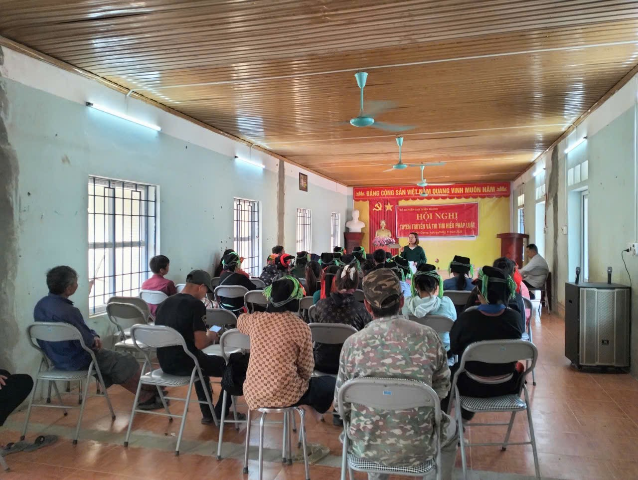 Đồng chí Nguyễn Thị Hiền, chuyên viên Phòng Phổ biến giáo dục pháp luật tuyên truyền tại thôn Khuổi Lùng