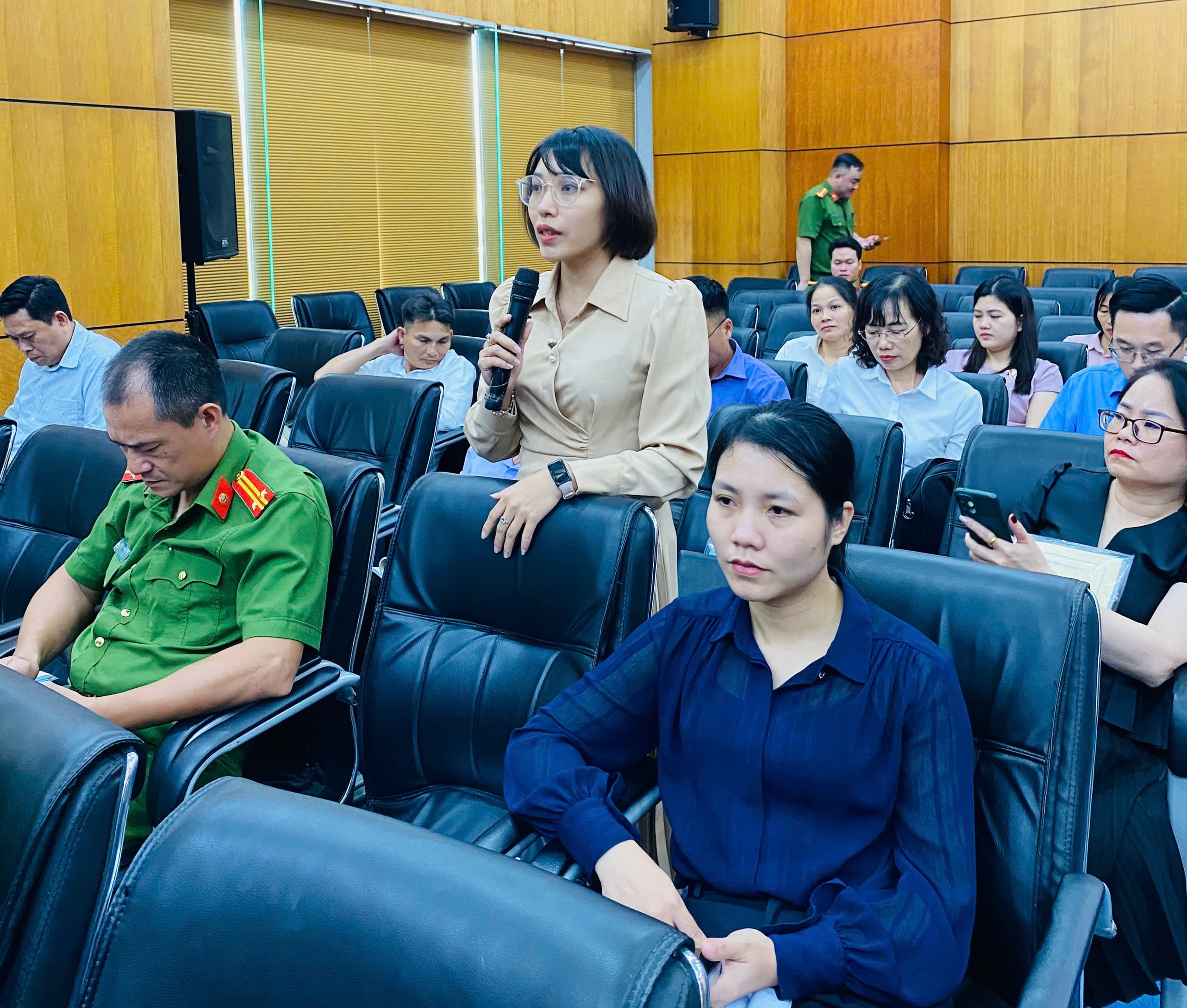 Sau khi nghe các Báo cáo viên của Sở tuyên truyền và hướng dẫn nghiệp vụ, đồng chí Vũ Thị Như Trang, Phó Giám đốc Sở Tư pháp đã chủ trì phần thảo luận giải đáp vướng mắc về nghiệp vụ và một số tình huống phát sinh trong thực tiễn thực hiện nhiệm vụ.