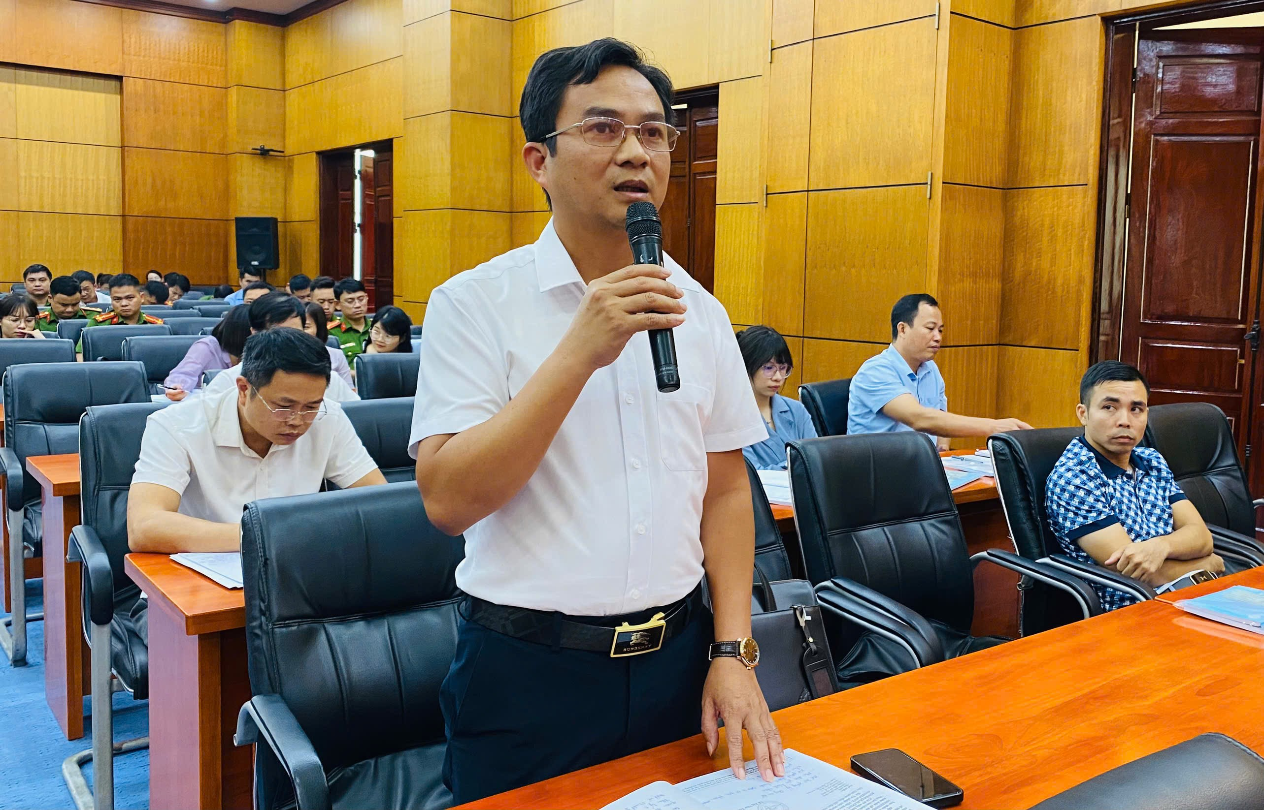 Đồng chí Nguyễn Minh Trung, Phó Chủ tịch Uỷ ban nhân dân xã Sơn Thuỷ phát biểu tại Hội nghị