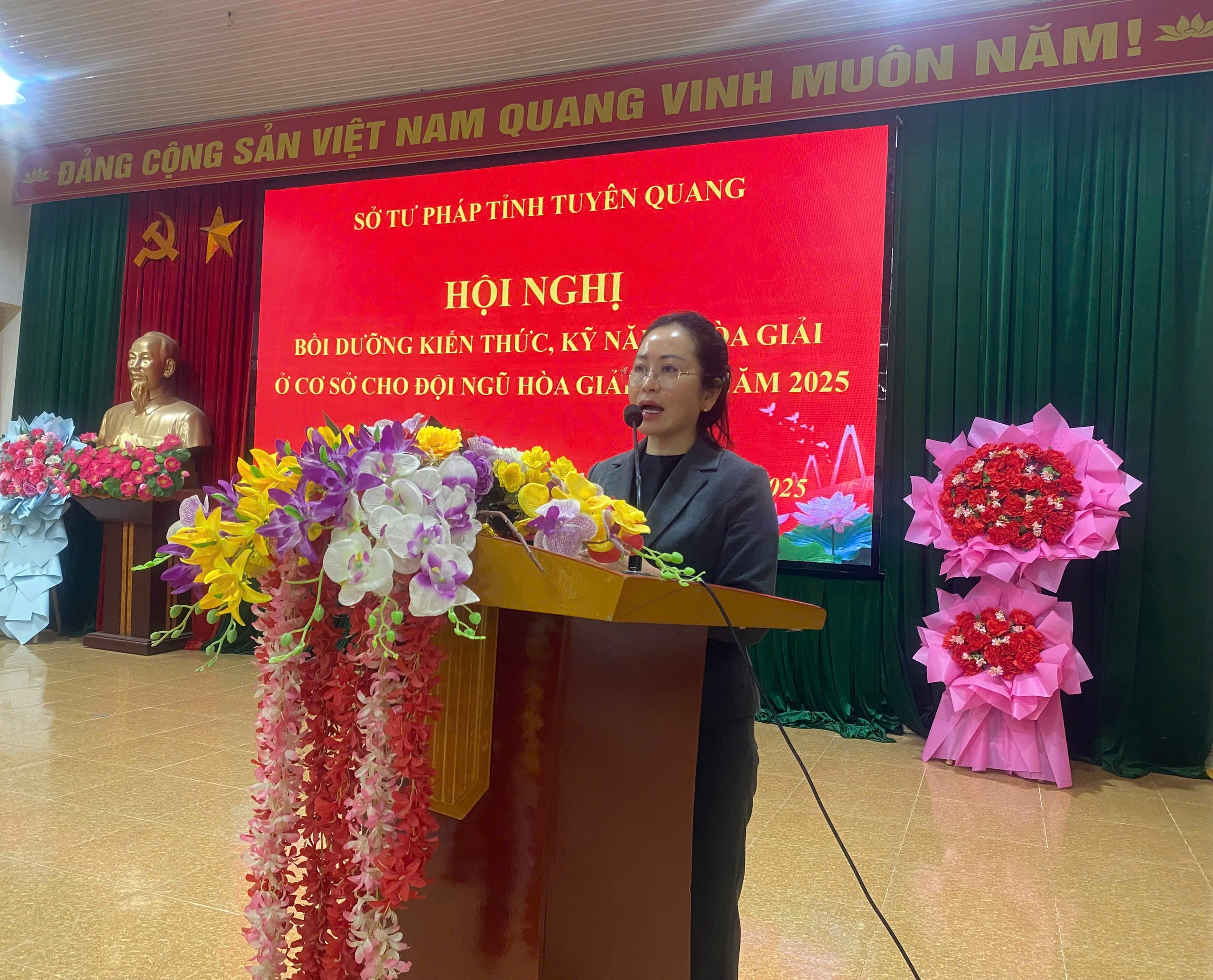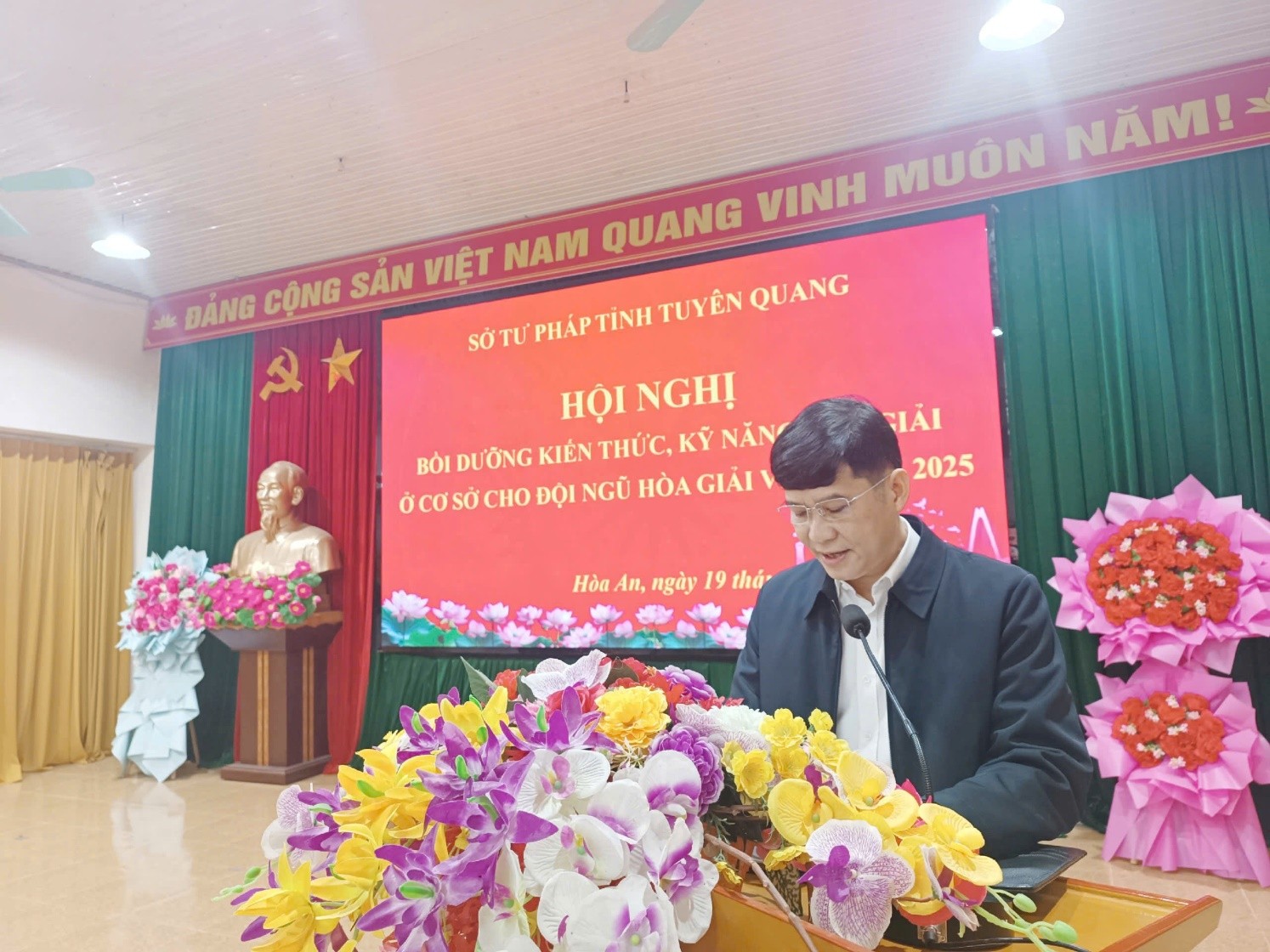 Thực hiện Kế hoạch số 58/KH-STP ngày 09/12/2025 của Sở Tư pháp về tổ chức Hội nghị tập huấn nghiệp vụ công tác hòa giải ở cơ sở cho đội ngũ hòa giải viên tại xã Minh Quang và xã Hoà An năm 2025 và Kế hoạch số 59/KH-STP ngày 09/12/2025 của Sở Tư pháp về tổ chức Hội nghị tập huấn nghiệp vụ công tác hòa giải ở cơ sở cho đội ngũ hòa giải viên tại xã Tân An năm 2025, từ ngày 17/12-19/12/2025, Sở Tư pháp tổ chức 03 Hội nghị tập huấn nghiệp vụ công tác hòa giải ở cơ sở tại các xã: Minh Quang, Tân An và Hoà An. Đồng chí Vũ Thị Như Trang, Phó Giám đốc Sở Tư pháp chủ trì và trực tiếp làm Báo cáo viên tại các Hội nghị.