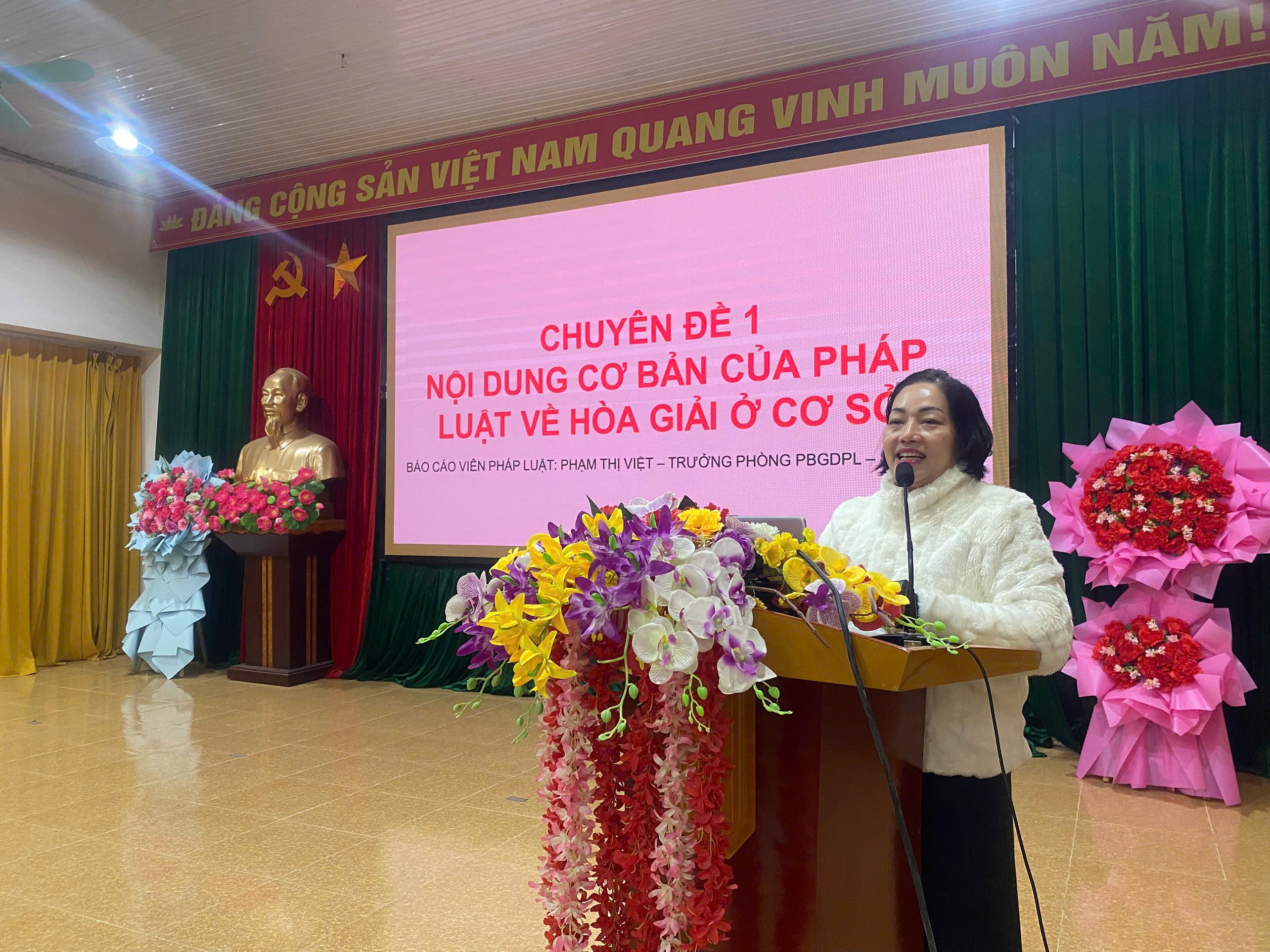 Tại các Hội nghị, đồng chí Phạm Thị Việt, Trưởng Phòng Phổ biến giáo dục pháp luật, Sở Tư pháp đã tập huấn về nghiệp vụ công tác hòa giải ở cơ sở với 03 chuyên đề gồm: (1) Nội dung cơ bản của pháp luật về hòa giải ở cơ sở; (2) Một số kiến thức pháp luật trọng tâm dành cho hòa giải viên ở cơ sở; (3) Nghiệp vụ, kỹ năng hòa giải ở cơ sở.